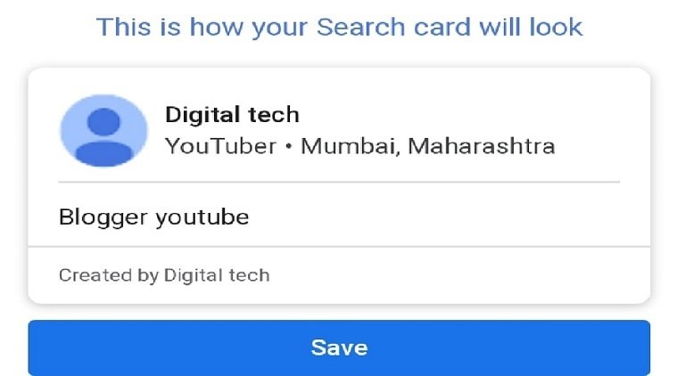 जैसे ही आप Save बटन पर क्लिक करेंगे आपका गूगल वर्चुअल विजिटिंग कार्ड बन जायेगा।