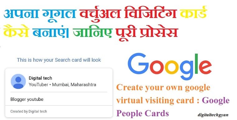 आप सभी को पता होगा की हमें अधिकतर लोगों की, कंपनियों की ऑनलाइन जानकारी खोजने में बहुत दिक्कत होती है। जैसे की नाम,पता,मोबाइल नंबर, वेबसाइट, किस प्रकार की कंपनी है, ईमेल आईडी क्या है इत्यादि। तो अब आपको ये सब खोजने में बहुत आसानी होने वाली है। जी हाँ गूगल आपके लिए एक नयी सर्विस लेकर आया है, जिससे आप या दुनिया का कोई भी व्यक्ति अपना विजिटिंग कार्ड गूगल पर बना सकता है। चाहे आप खुद के लिए आपना गूगल वर्चुअल विजिटिंग कार्ड बनाए या फिर अपनी कंपनी के लिए। आप दोनों के लिए वर्चुअल विजिटिंग कार्ड बना सकते है।
